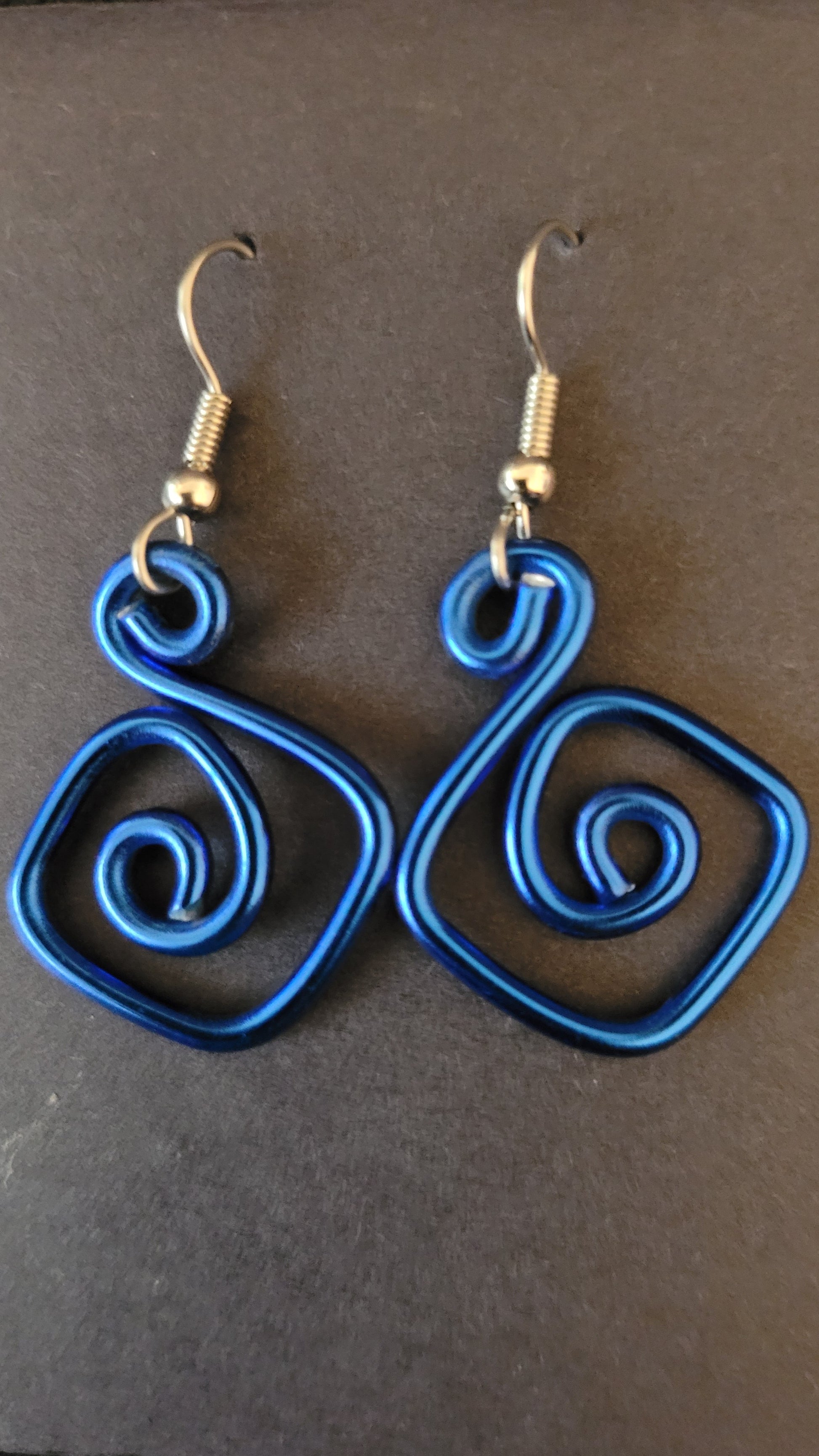 Smaller by design, but still unique! Royal Blue Aluminum wire is used to make these handmade earrings.