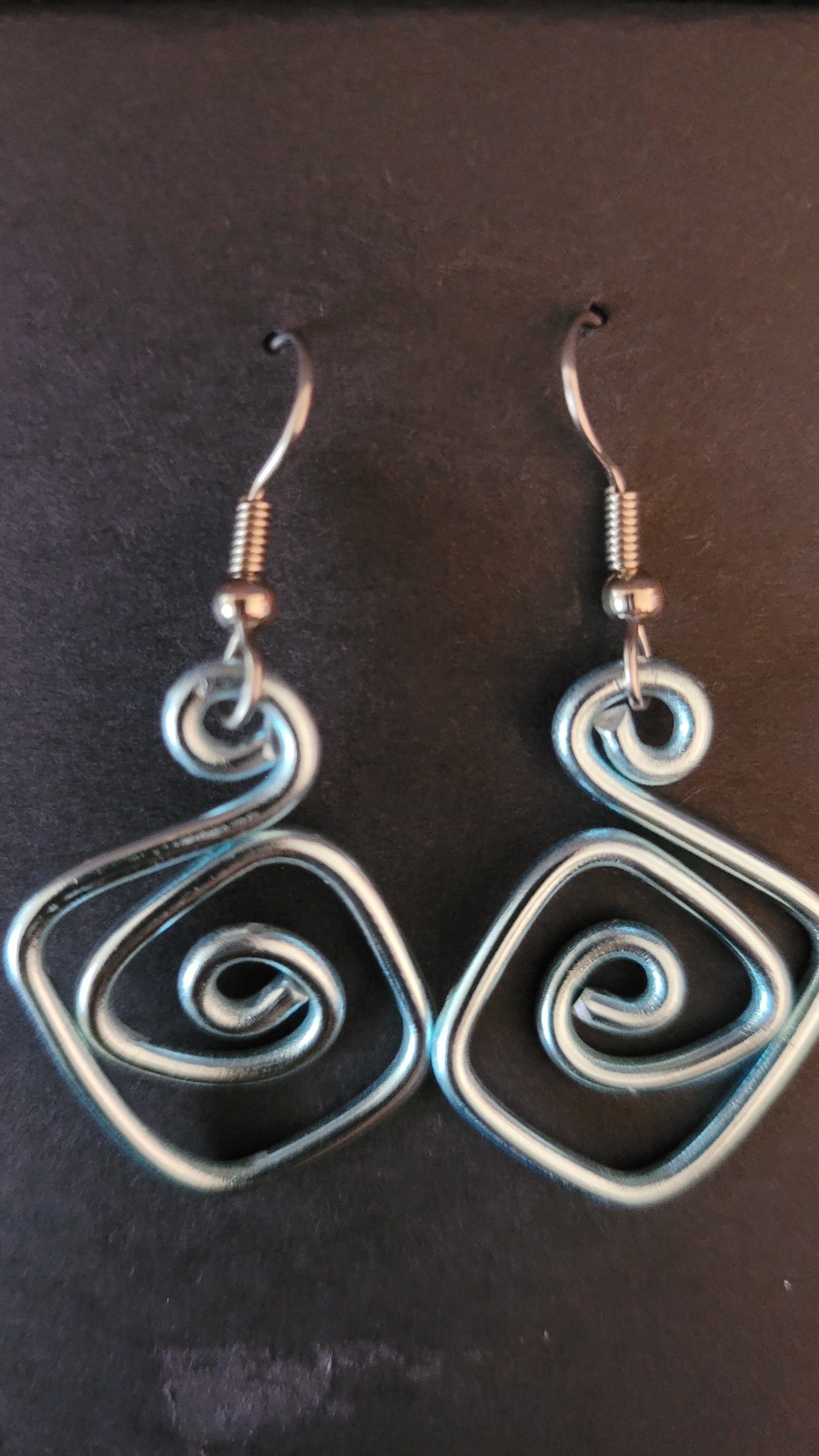 Smaller by design, but still unique! Soft Blue Aluminum wire is used to make these handmade earrings.