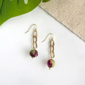 Kantha - These bright and colorful beads are sustainably made by women artisans in India using repurposed textiles. They come in earrings, necklaces and bracelets. The best thing is they go with anything your wear! Add a delicate burst of color to any outfit.